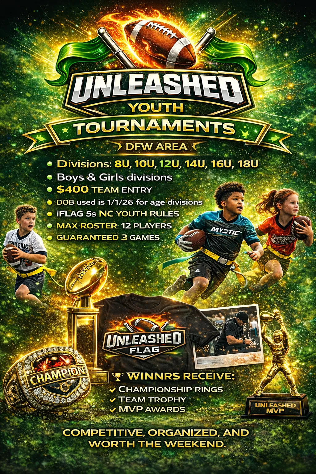Unleashed Flag offers competitive opportunities across multiple divisions, age groups, and formats—ensuring athletes and teams can compete in environments that match their goals and experience.